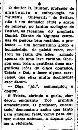| DESCRIÇÃO | Diz-se que o Clube Zoológico do Brasil, em sua próxima reunião, iria discutir as bases necessárias para a construção de um Jardim Zoológico na cidade de São Paulo.
