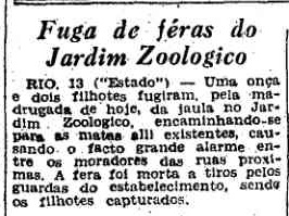 | DESCRIÇÃO | Ganha espaço na capa do Estadão pequena nota que relata fuga e morte de onça com filhotes do zoo do Rio de Janeiro. A onça foi morta e os filhotes recapturados. |